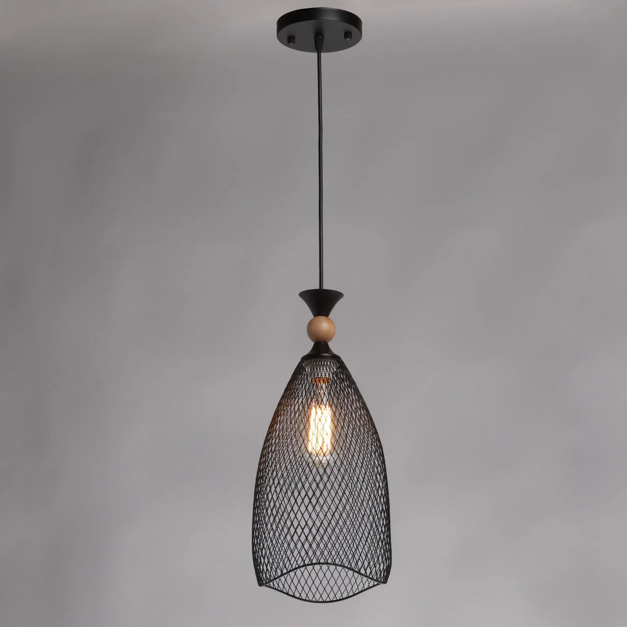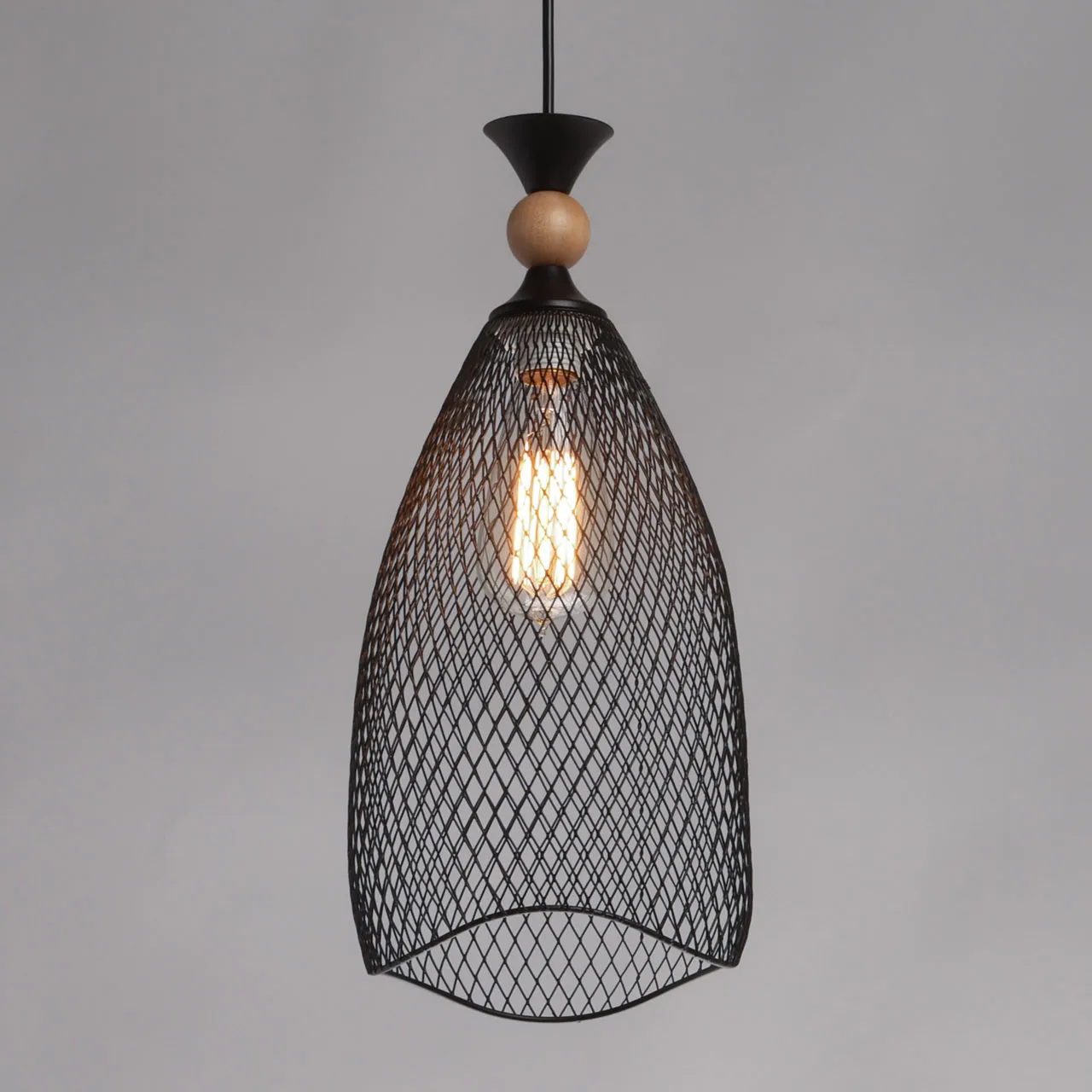 Основание/ металл/ черный Плафон/ металл/ черный Декор/ дерево/ светлый