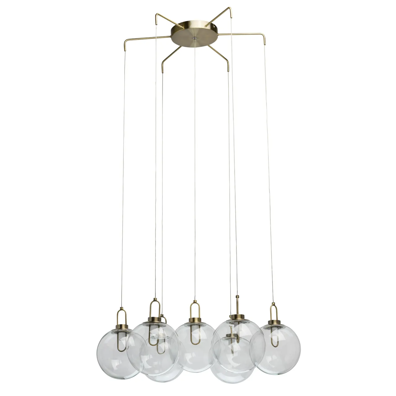 Металлическое основание цвета античной бронзы. Плафоны из прозрачного стекла.