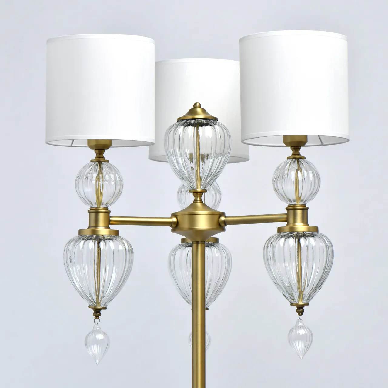Основание/металл/латунь Абажур/текстиль/белый Декор/стекло