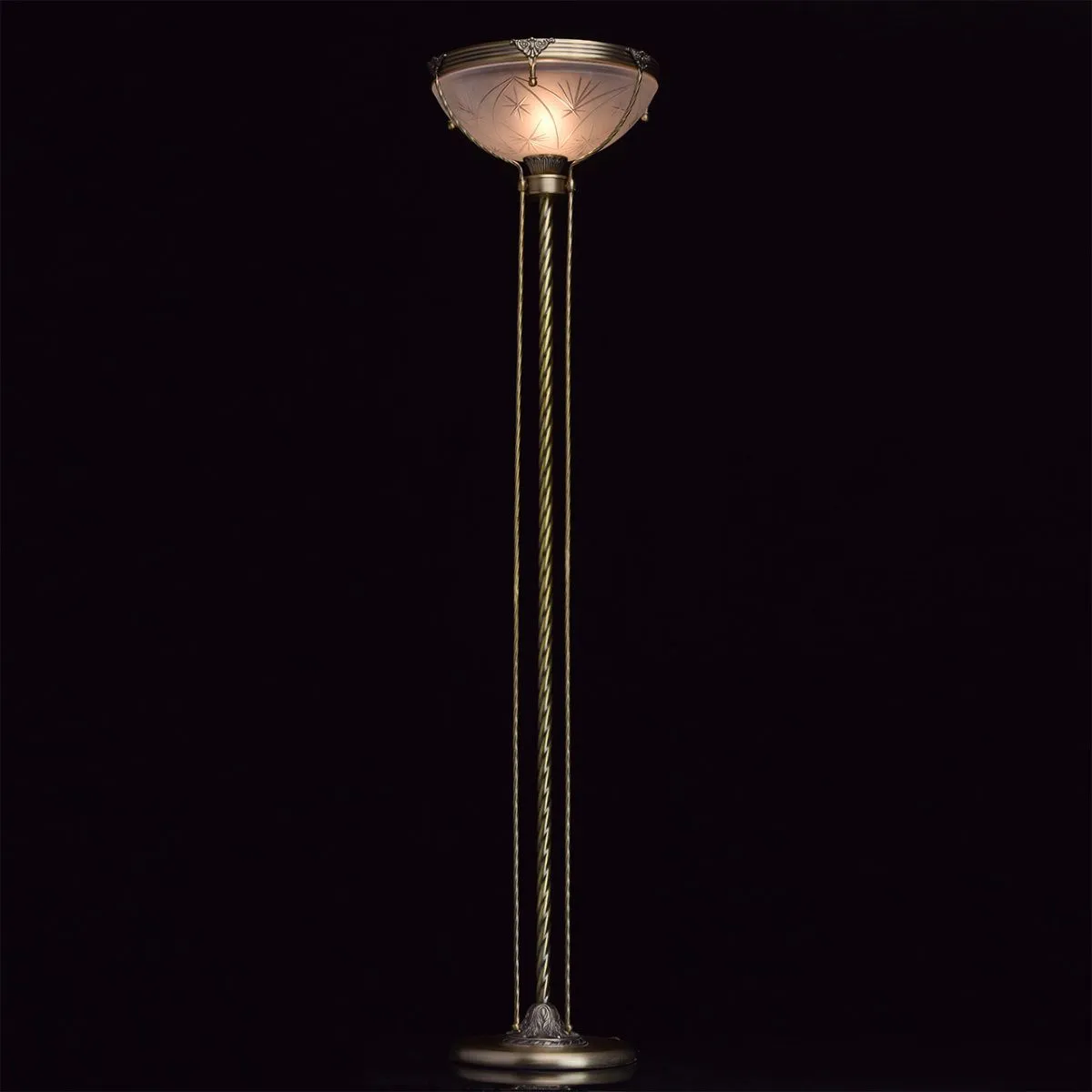 Алюминиевое основание цвета античной бронзы, плафон из матового стекла с резным узором.